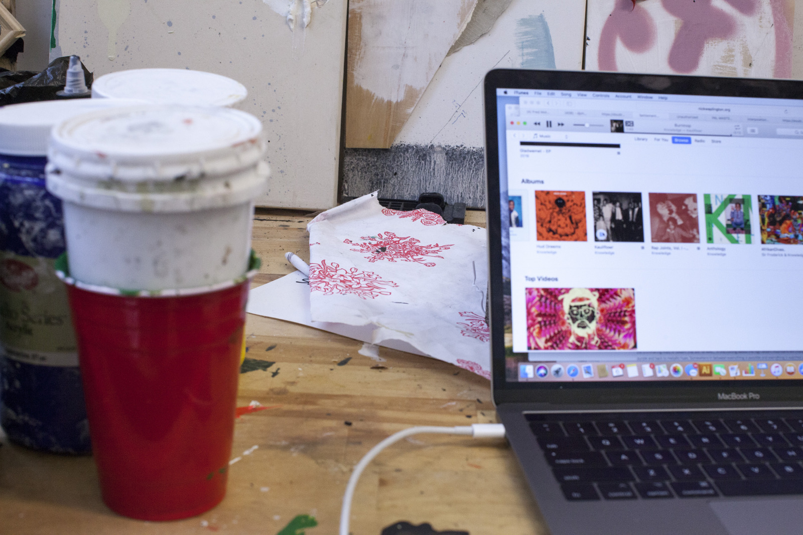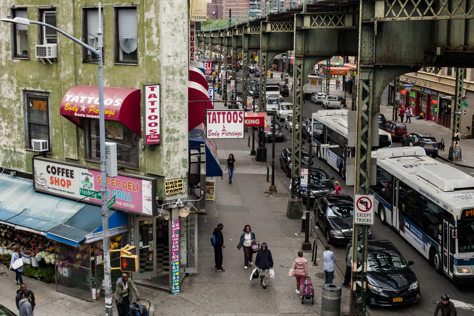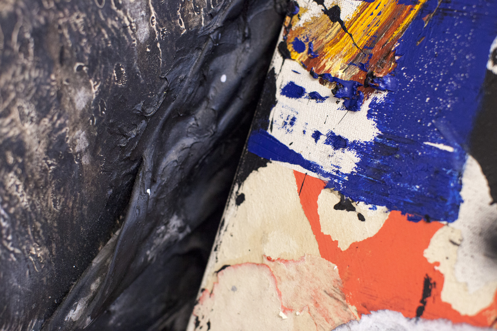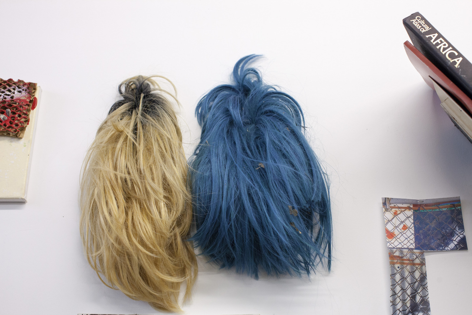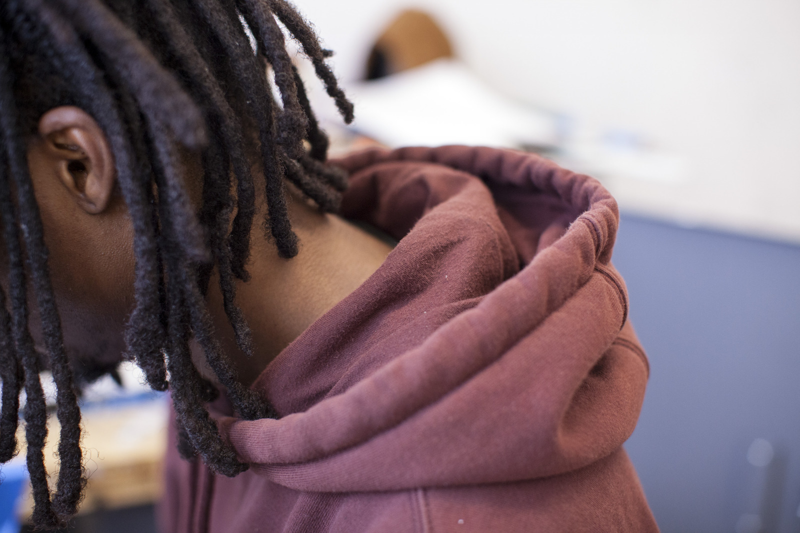 Zenat Begum on Bedford and Quincy in Bed Stuy, Brooklyn. A month later, Devin and I agreed to meet in his atelier on Flushing Avenue. Devin was shy in front of the lens, shading under his hat. An angel passed. Art has blank page vertigo. And photography cannot deal with empty. Our mutual shyness got us to stare at the wall. I started to photograph Devin's art and artefacts realising how many layers it unfolds We are always so dramatically focused on a face when ‘portraits in absence’ are often revealing much more. Now I had set him free to compose his own piece of work, jamming from print to screen to an improvised canvas on the floor. We now were busy beasts spinning without frictions around scattered and textured material to make something out of it. When I left Devin’s atelier, Brooklyn itself wore layered textures that people were filling up as if a canvas. It was a Perfect Day.