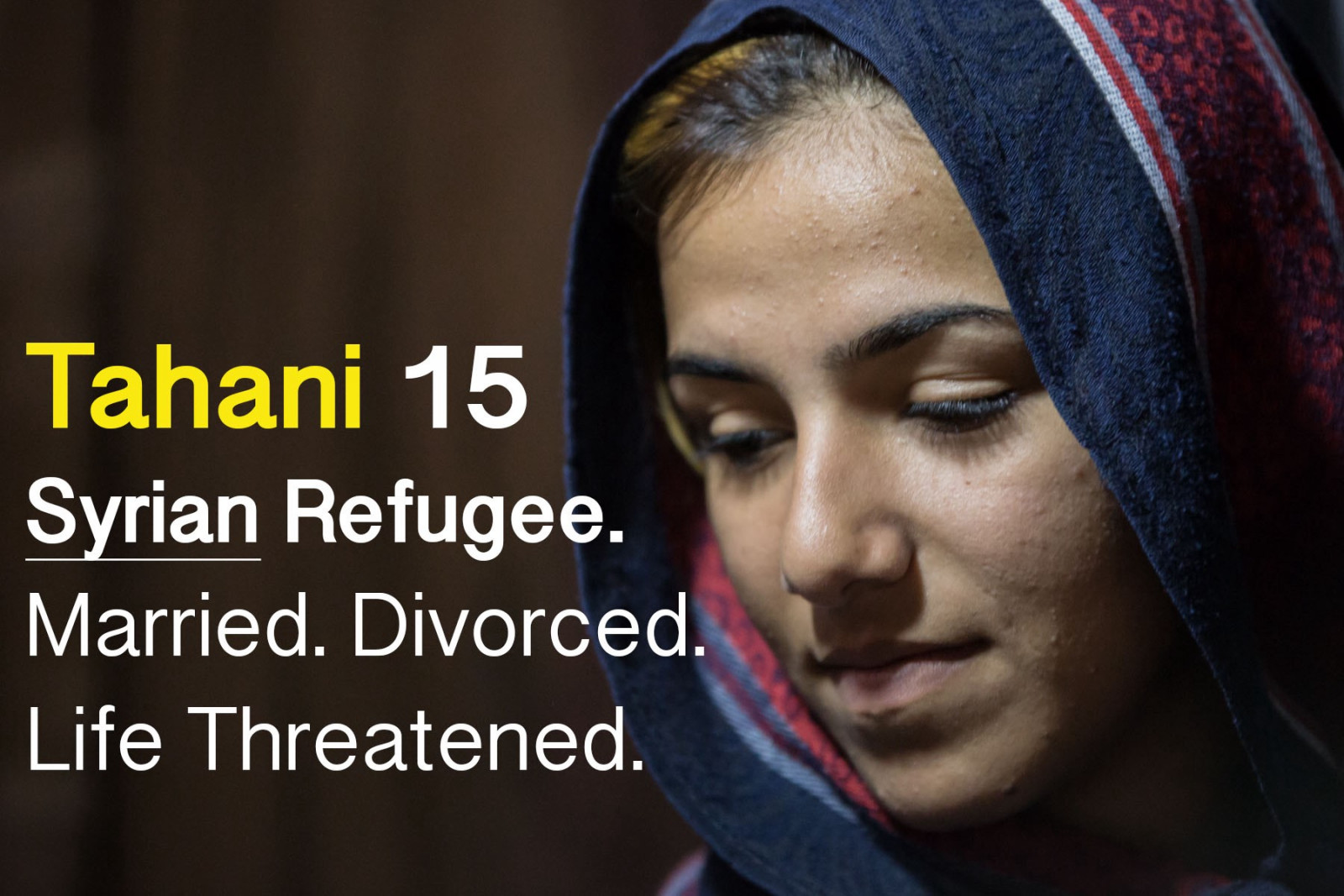 Born Syrian, you’ve been a refugee in Lebanon for two years; married at 14 to your mother’s relative, and divorced at 15.