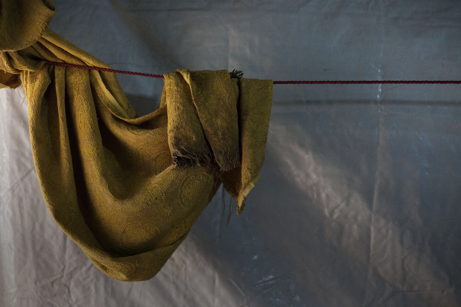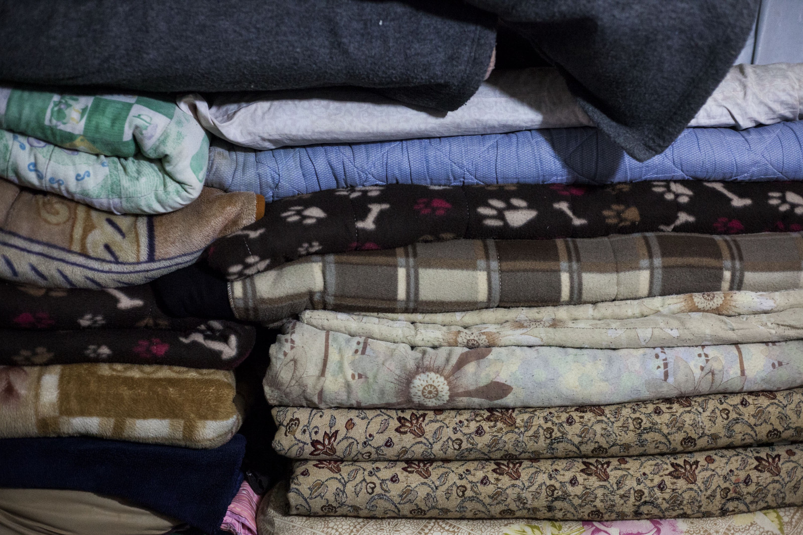 Pilled up in a corner, the family’s bed sets. Photos Claudine Boeglin