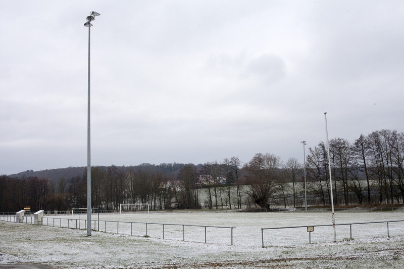 A moody sport court is covered in frost