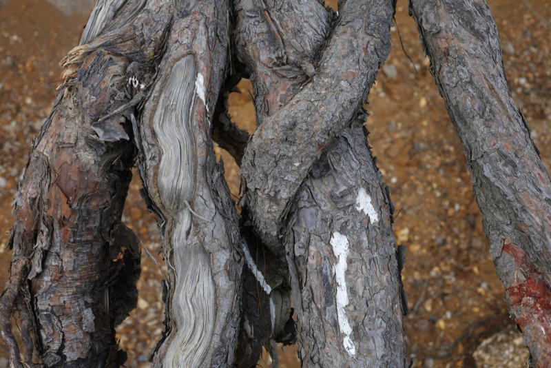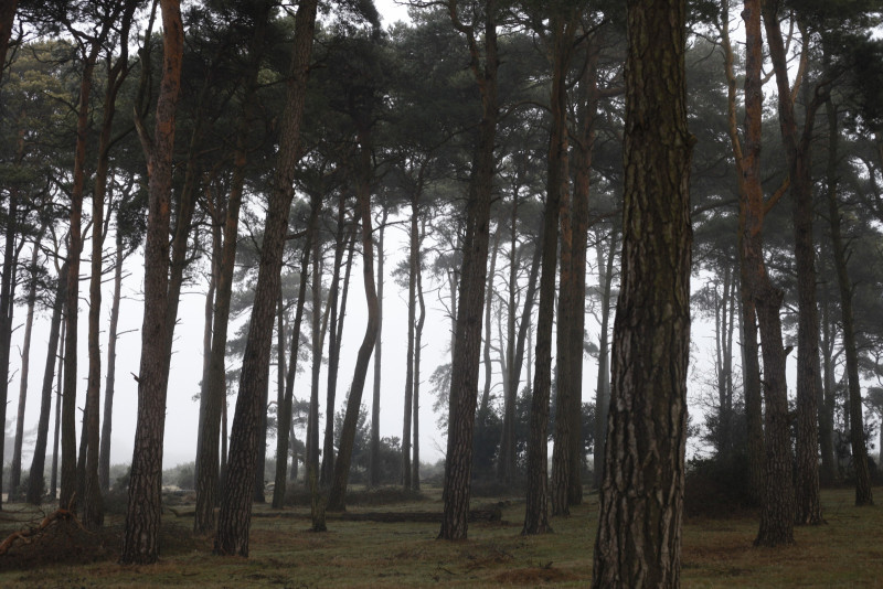 In abysmal stillness stand raw-boned tree-sentinels