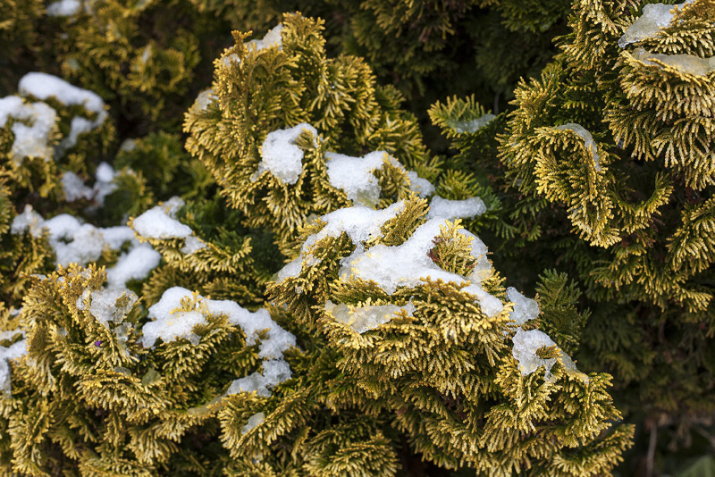 Furrows of snow build soggy mud